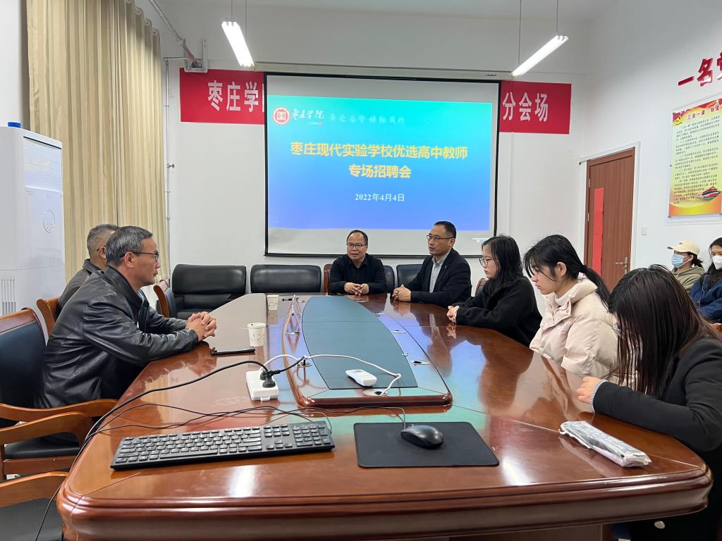 为进一步激发毕业生充分就业、及早就业意识,促进供需对接,助力毕业生高质量就业。2023年4月4日,beat365中文官网举办优选高中教师专场招聘会。枣庄现代实验学校校长姜德仁、beat365中文官网党总支书记王海峰出席会议,招聘会由beat365中文官网副院长吕长青主持。