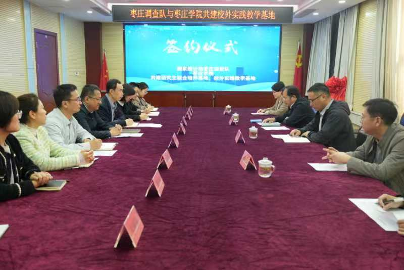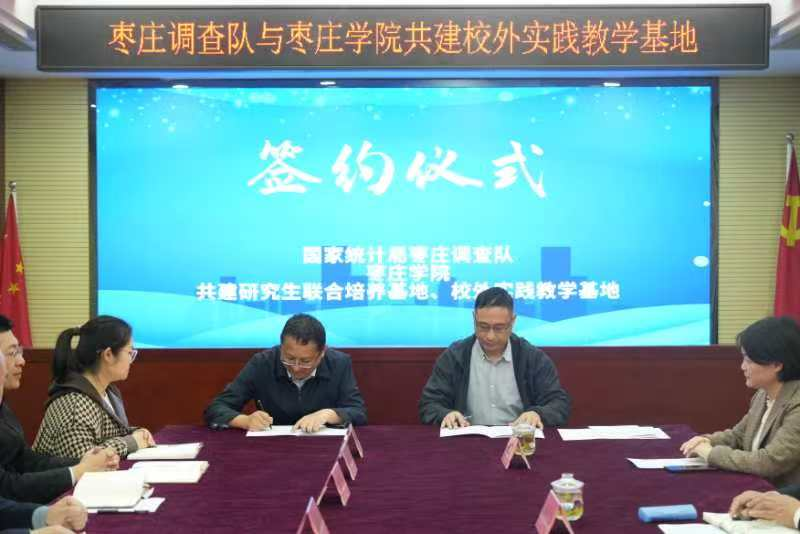 双方现场签订了研究生联合培养基地协议,确定国家统计局枣庄调查大队为教学实践基地,并举行现场揭牌仪式。