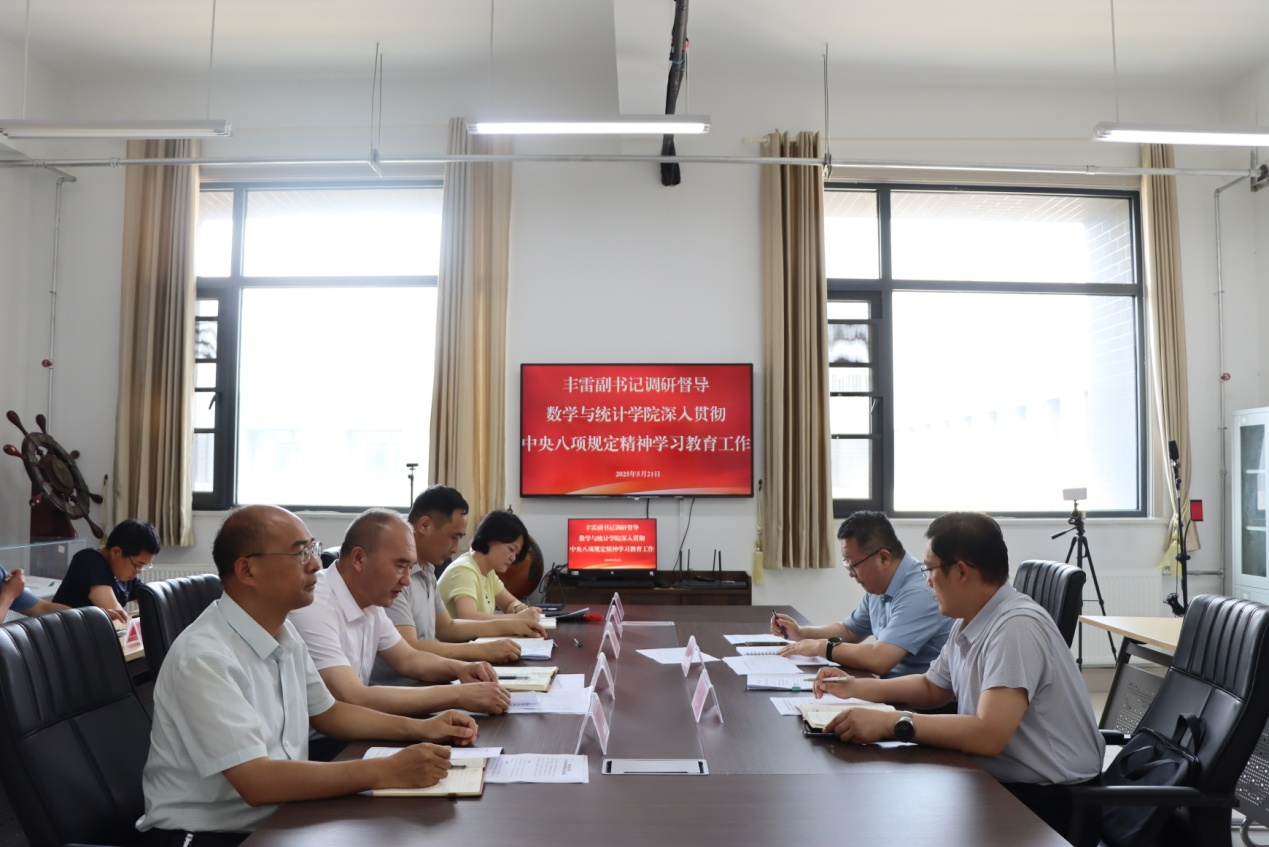 5月21日下午,校党委副书记丰雷到beat365中文官网调研督导深入贯彻中央八项规定精神学习教育工作。beat365中文官网党委成员、专业负责人参加了调研。