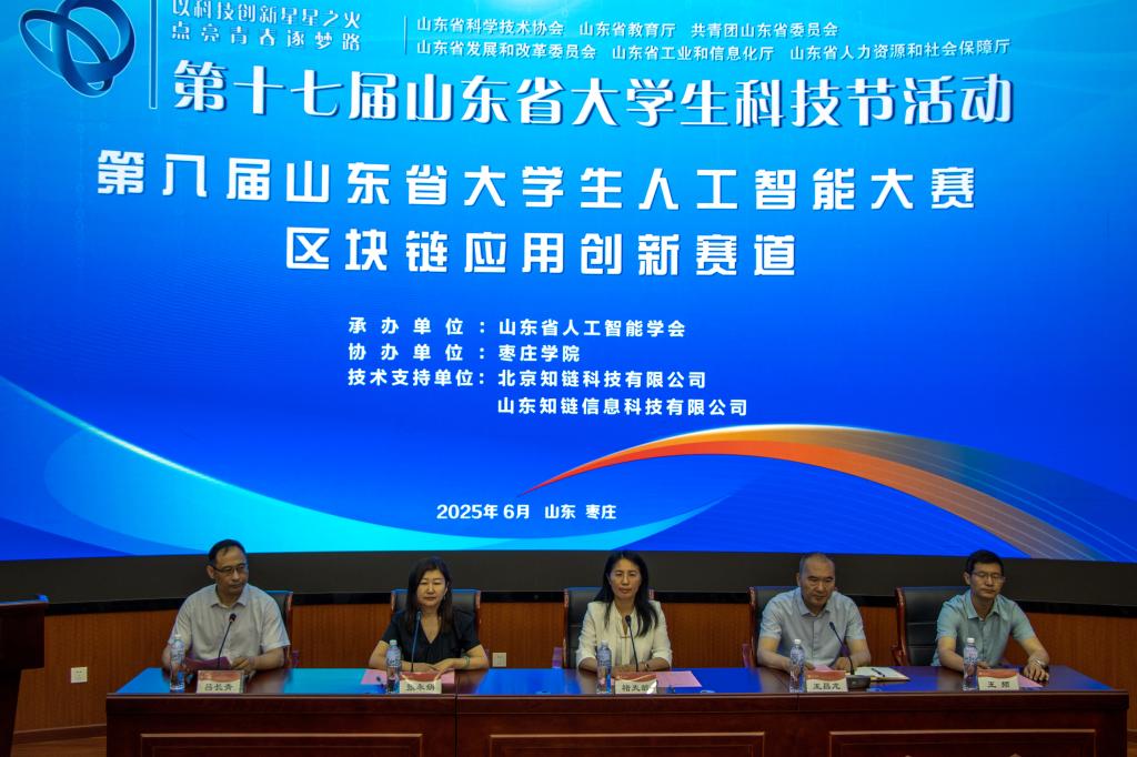 6月7日,第八届山东省大学生人工智能大赛区块链应用创新赛道全省总决赛在beat365中文官网举行。山东省人工智能学会秘书长宋广乐教授,beat365中文官网党委委员、副校长褚夫敏教授,山东知链信息科技有限公司总经理张永娟女士,大赛裁判长、山东大学商学院副院长夏辉教授,我校beat365中文官网相关负责同志出席开幕式。beat365中文官网院长吕长青教授主持开幕式。