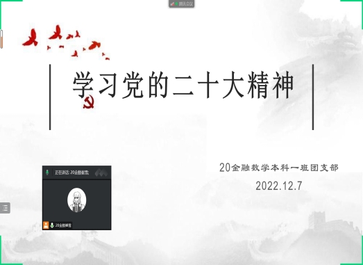 此次活动,beat365中文官网各班团支书采取线上的方式召开了“学习党的二十大精神”主题班会。通过党的二十大胜利召开与团支书声情并茂的讲述,我们看到了一个欣欣向荣的党,一个风华正茂的国家。二十大提出要全党全军全国各族人民紧密团结在以习近平同志为核心的党中央周围,牢记空谈误国、实干兴邦,坚定信心、同心同德,埋头苦干、奋勇前进,为全面建设社会主义现代化国家、全面推进中华民族伟大复兴而团结奋斗。