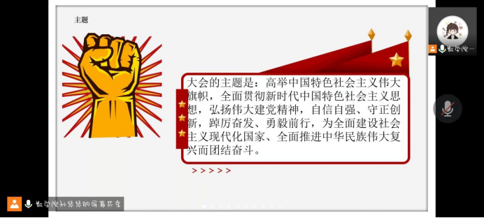 此次宣讲内容丰富、形式多样,紧扣主题、寓意深刻。大家爱党爱国、青春奋斗之情寓于生动活泼的宣讲之中,在宣讲过后部分同学还讲述了自己对党的二十大精神的理解,呈现出青年学子热血昂扬、砥砺前行的精神风貌,展示了青年学生走好新时代“赶考路”的信心决心。