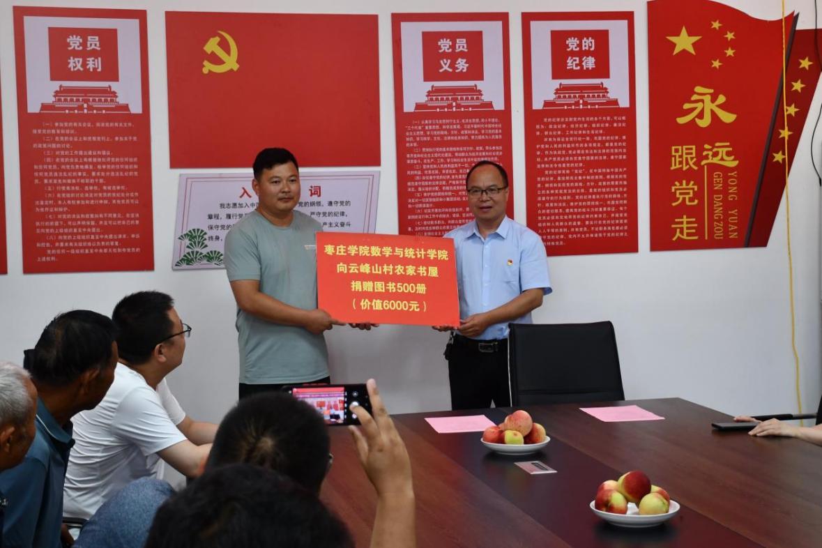此次活动前期,beat365官网派驻山亭第一书记王高升积极推动学院和云峰山村建立联系,在了解到云峰山村积极建设农家书屋后,beat365中文官网在学院内部开展图书征集活动,并在活动当日向云峰山村农家书屋捐赠图书500册,支持云峰山村农家书屋进一步落地,为推动云峰山村的文化建设贡献了绵薄力量,对云峰山村的教育工作添砖加瓦。