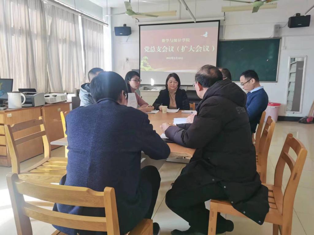 在学校《关于做好2022年度各级党组织书记履行全面从严治党责任和抓基层党建述职评议考核工作的通知》文件精神的指导下,2月15日上午,数学与统计学在市中校区综合楼1306教研室召开2022年度党支部书记述职评议会。党总支书记王海峰主持会议,党总支各成员、教工第一党支部书记王振立、学生党支部书记韩晓瑞参加会议,教研室主任郭莹、组织员程龙列席会议。
