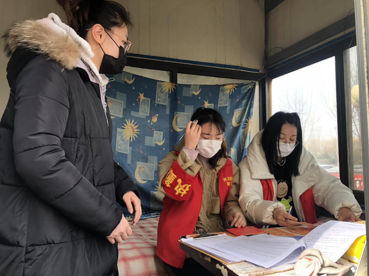 曹雅琪正在为出入居民做登记