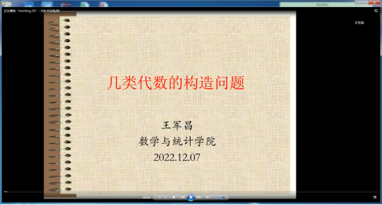 王军昌老师作了题为《几类代数的构造问题》的学术报告。报告主要介绍了国家自然科学基金申报书中涉及的霍普夫群余代数构造从卡当矩阵到胞腔代数的简图构造两个方面的内容王老师为大家详细的介绍了霍普夫群余代数构造方法、从卡当矩阵到胞腔代数的简图构造方法以及本人在该领域取得的主要成果。