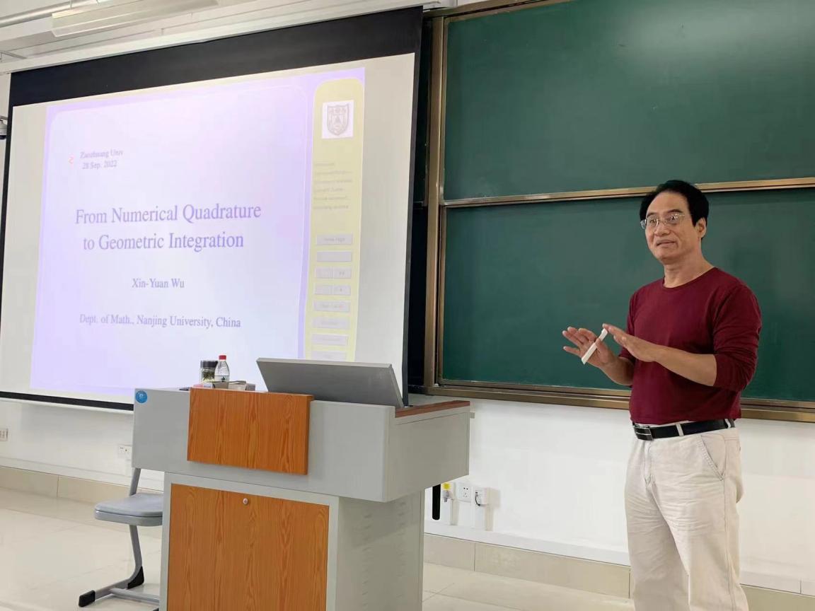 9月28日下午,南京大学数学系吴新元教授应邀为beat365官网教师作主题为“From Numerical Quadrature to Geometric Integration”的学术讲座。数学与统计学院党总支书记王海峰书记、副院长吕长青、计算数学科研团队全体教师和部分专业高年级学生参加会议,王海峰书记主持报告会。