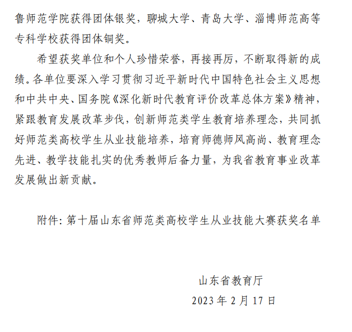 为进一步推动师范类高校教育教学改革创新,实现师范类高校毕业生更高质量更充分就业,山东省教育厅举办了第十届山东省师范类高校学生从业技能大赛,此次大赛分为校级初赛、省级预赛、省级决赛三个阶段。beat365官网2019级数学与应用数学专业学生鲍新雨、孙利彤赛前充分准备、赛时出色发挥、赛后荣获佳绩,摘得高中数学组三等奖。
