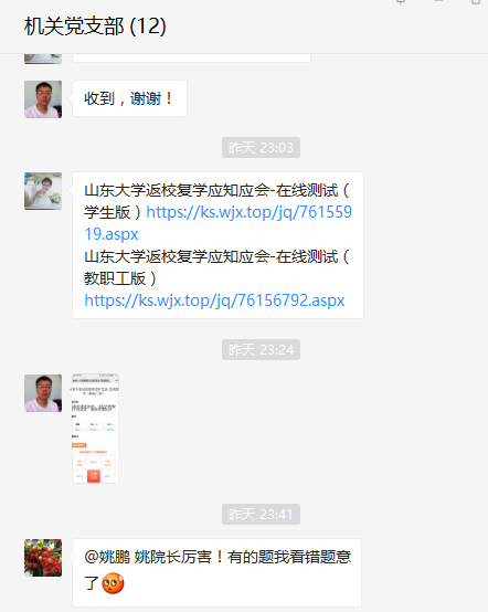 为切实保障全体师生都能熟知学校春季学生返校复学应知应会,学院采用灵活措施,制作了简易版答题小程序,将应知应会内容以单选、多选和判断等形式进行考核,同时在题目中加入了消毒防护小常识。5月7日晚,学院在微信平台推出了beat365在线唯一官网返校复学应知应会—在线测试(学生版)和beat365在线唯一官网返校复学应知应会—在线测试(教职工版),推出后学院教职工积极进行了线上测试,通过测试大家充分理解并领会了应知应会内容,起到了良好的学习效果。