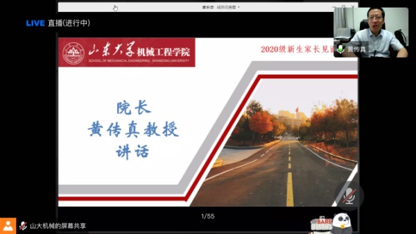 学院高度重视学生工作,重视家校联合,在2020级新生报到前,通过线上召开新生家长见面会,送去学院对家长和新生的问候,同时让家长们充分了解学院情况,充分沟通交流,建立了学生、家长与学院联系的长效机制,为2020级新生教育培养工作奠定坚实的基础。