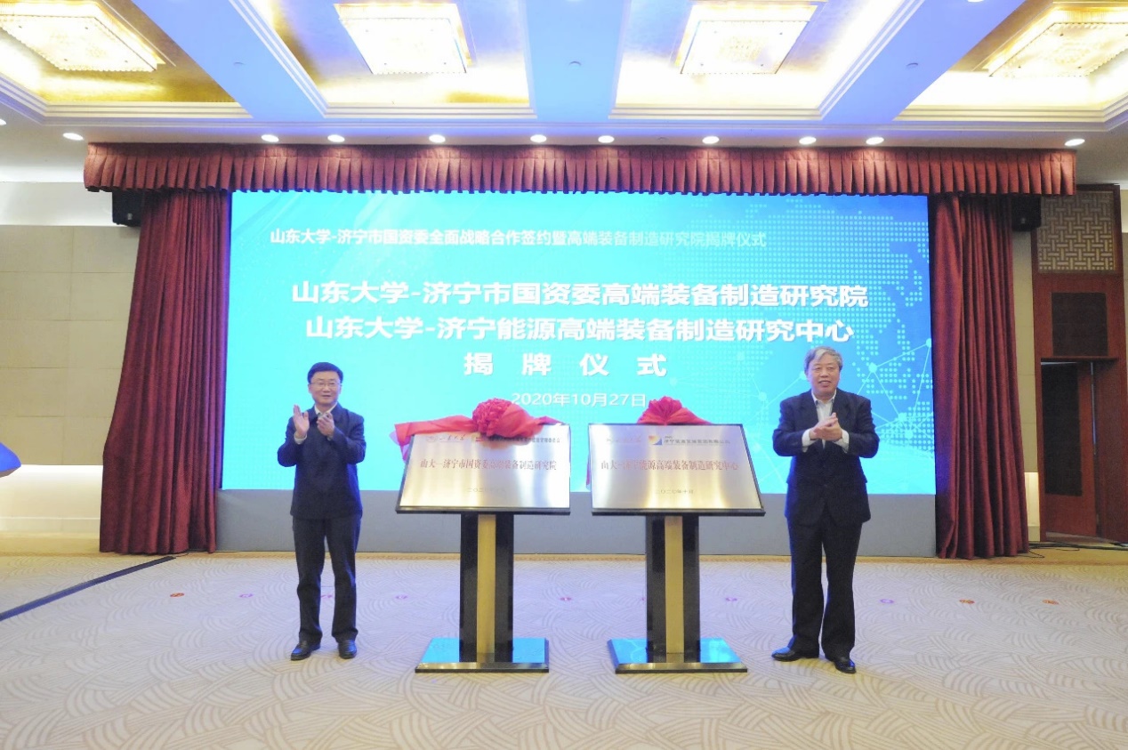 签约仪式上,丰家雷、黄传真签署beat365在线唯一官网—济宁市国资委全面战略合作框架协议,刘杰、张广宇签署beat365在线唯一官网—济宁能源合作共建高端装备制造研究中心协议,仝兴华、田和友共同为beat365在线唯一官网—济宁市国资委高端装备制造研究院、beat365在线唯一官网—济宁能源高端装备制造研究中心揭牌。