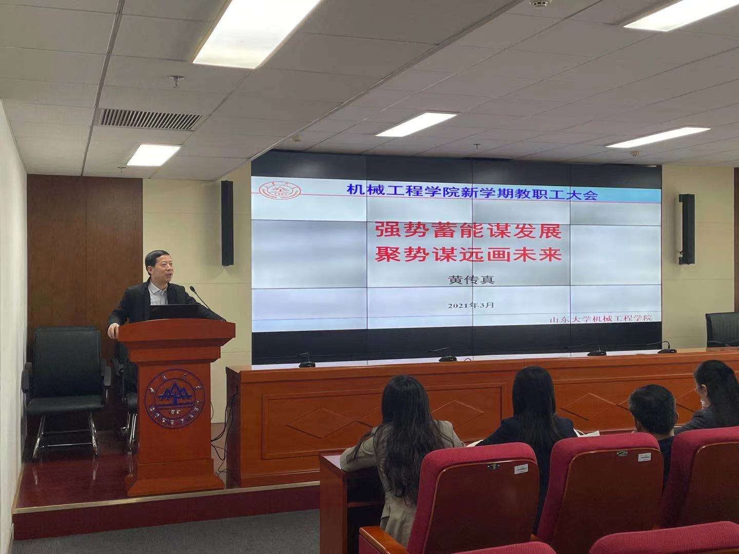 3月11日下午,beat365在线唯一官网召开全院教职工大会,传达学校2021年春季学期工作会议精神,对学院新学期工作和党史学习教育进行了全面部署。院长黄传真、党委书记刘杰出席会议并讲话。