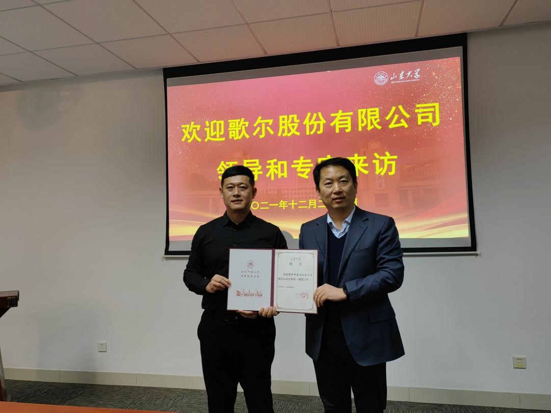 12月29日,歌尔股份有限公司李丰国副总裁一行访问我院,就研究生和本科人才培养、科研合作、产教融合基地建设等方面进行深入交流,常务副院长万熠等学院领导班子成员及教师代表出席相关活动。