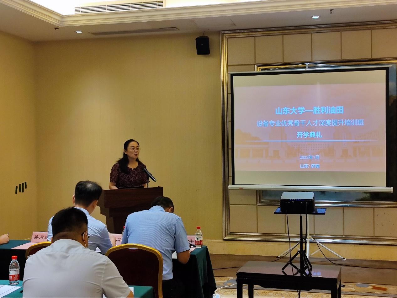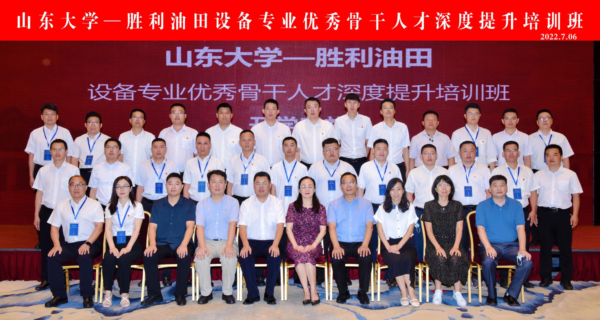 7月6日上午,beat365在线唯一官网-胜利油田“设备专业优秀骨干人才深度提升培训班”在beat365在线唯一官网千佛山校区举行开班典礼。继续教育学院副院长刘灿伟、beat365在线唯一官网党委书记刘杰、beat365在线唯一官网院长万熠、副院长蔡玉奎、胜利油田党校(培训中心)人才培养项目部书记兼经理孙洪杰出席会议,并发表讲话。设备专业人才培训项目负责人何平主任、班主任姜月红老师,设备专业优秀骨干人才深度提升培训班全体成员参加了开班典礼。本次开班典礼由蔡玉奎副院长主持。
