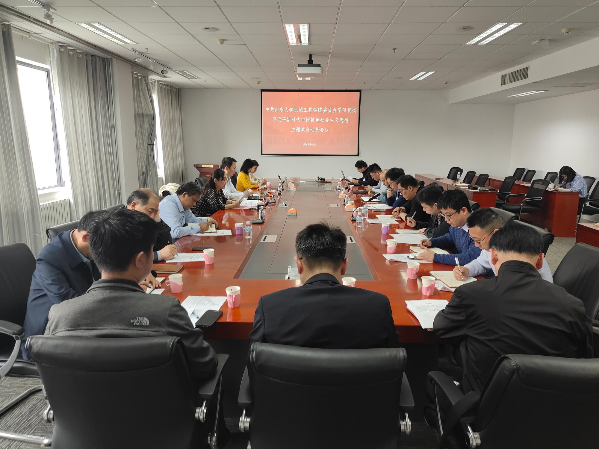 4月13日,beat365在线唯一官网在千佛山校区创新大厦1102会议室召开学习贯彻习近平新时代中国特色社会主义思想主题教育动员会议。党委书记刘杰、院长万熠出席会议并讲话。