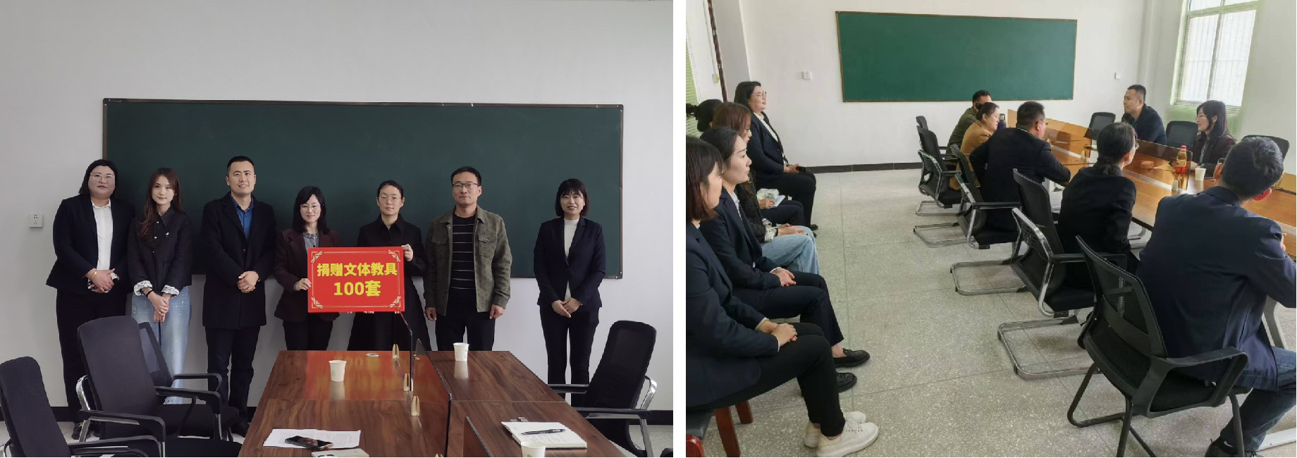 学院一行与王洪涛、朗陵街道党工委副书记陈行行、朗陵中心校副校长张俊华、朗陵中心小学校长薛智伟等进行了交流座谈。座谈会上,王洪涛等对beat365在线唯一官网一直以来的支持和帮助表示感谢,双方就帮扶工作开展以来的成效进行了交流,并对接下来的思路举措进行了探讨。刘玥代表beat365在线唯一官网向确山县朗陵街道中心小学捐赠100套文体教具。下一步,学院将继续发挥人才培养优势、科技创新优势、学科和智库服务优势,找到结合点,找准切入口,为确山县和朗陵街道各项事业高质量发展作出更多贡献,在新征程上助力乡村全面振兴不断取得新成效。