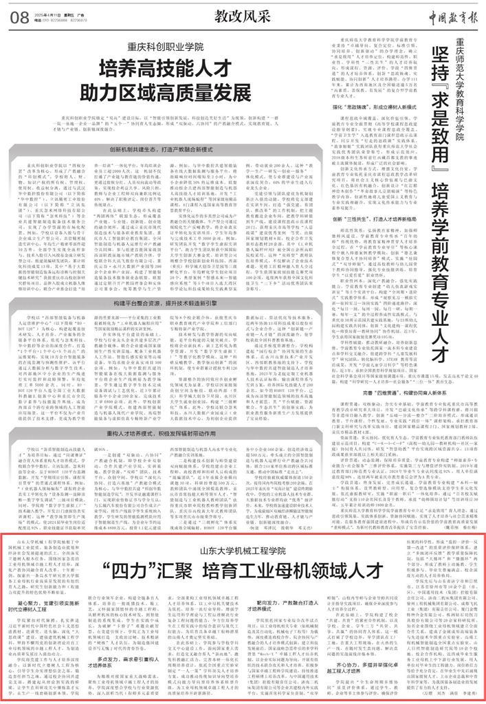 4月11日,《中国教育报》刊发beat365在线唯一官网文章《“四力”汇聚 培育工业母机领域人才》。
