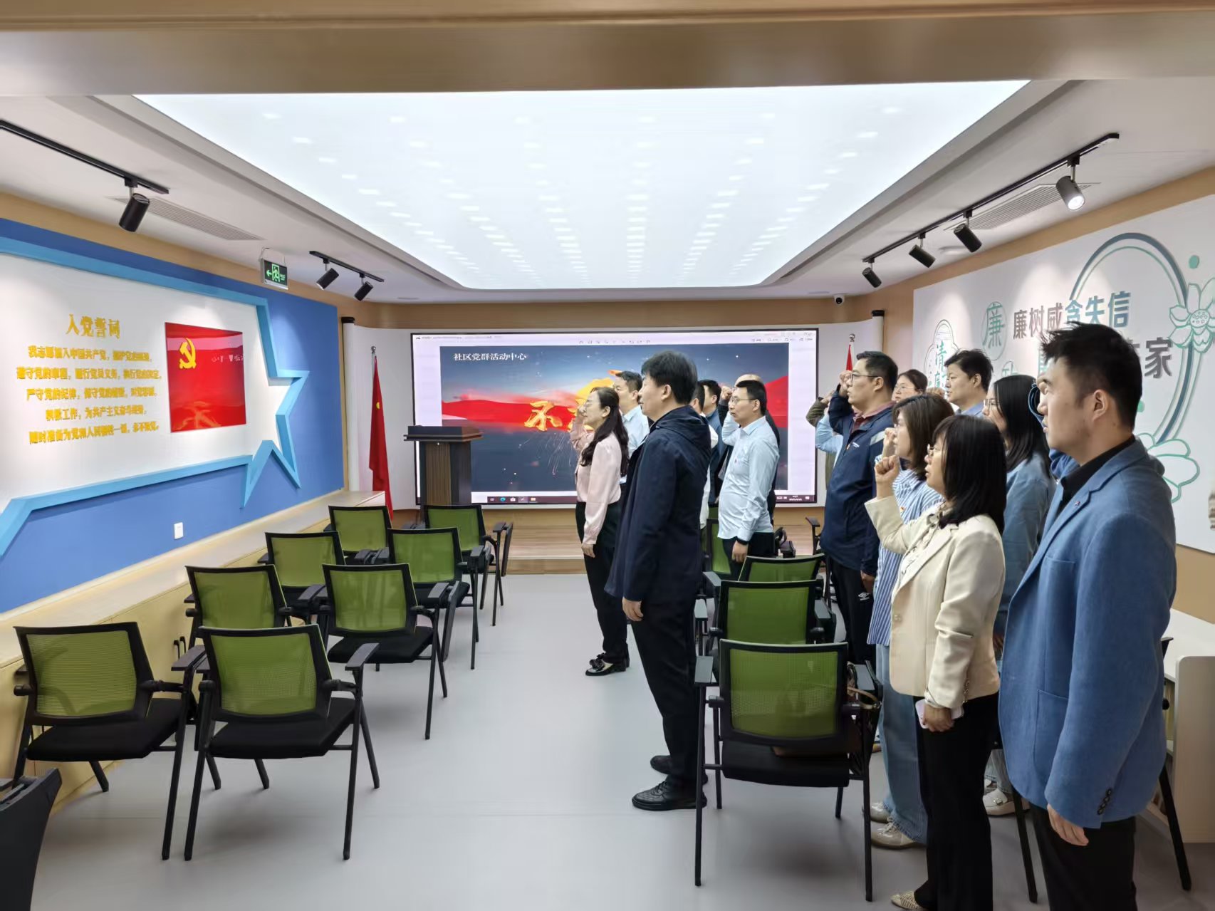 参观结束后,刘杰同志带领党员面向党旗宣誓,重温了入党誓词。