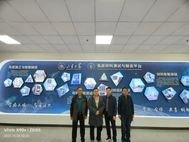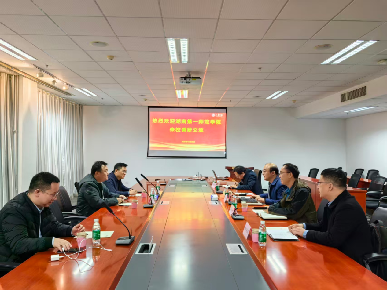 10月28日上午,湖南第一师范学院智能制造学院副院长蔡颂、产教融合与校地企合作处邓志刚一行来院调研交流。beat365在线唯一官网副院长朱洪涛、院长助理朱振杰、制造科学与工程系主任曲延鹏,实验中心副主任毕文波等参加调研。