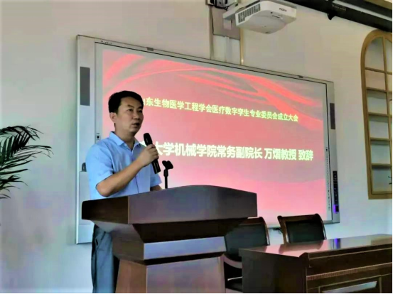 2021年6月25日上午,在此建党百年来临之际,山东生物医学工程学会医疗数字孪生专业委员会成立大会暨第一届医疗数字孪生论坛在beat365在线唯一官网齐鲁医院正式召开。齐鲁医院院长陈玉国教授、副院长刘奇迹教授、beat365在线唯一官网常务副院长万熠教授、山东生物医学工程学会秘书长刘爱玲同志应邀到会并致辞。