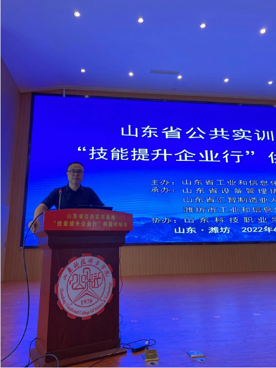 6月24日,由省工业和信息化厅主办,省设备管理协会、潍坊市工业和信息化局、山东科技职业学院协办的山东省新旧动能转换公共实训基地“技能提升企业行”活动在潍坊市正式启动。近百家潍坊市重点企业和26家公共实训基地相关负责人参加会议。