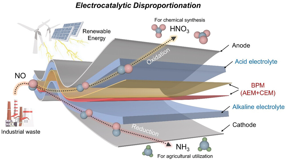 传统制氨(NH3)主要通过Haber-Bosch工艺(HBP),但氮气分子中三键结构的高稳定性,导致HBP过程需要大量能量输入,伴随高耗能及高碳排放量。可再生能源驱动的电化学氮还原反应(ENRR)是一种发展潜力巨大,可直接利用一氧化氮(NO)污染物作为原料生产NH3的新兴技术,为实现制氨产业绿色发展提供了可行路径。