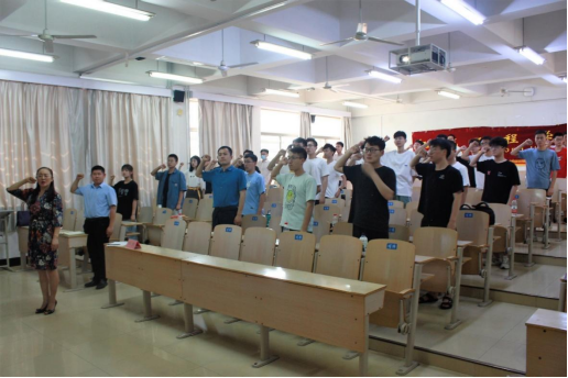 党课最后,刘杰书记带领全体党员同志面向党旗重温入党誓词,铿锵有力的宣誓声响彻全场。