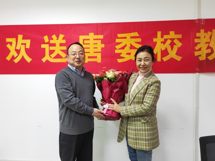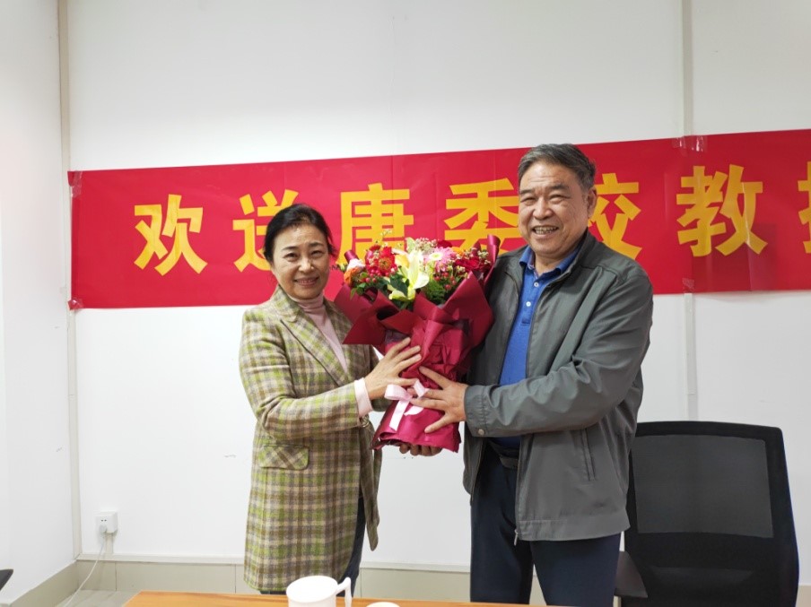 仪式上,回顾了唐委校教授四十年的从教经历,通过回忆老照片,重温了工作中与同事们共度的难忘瞬间。岁月如歌,温情长流。宋清华及过控所老师们为唐老师送上鲜花和祝福,对唐老师严谨敬业的工作作风、对同事的包容和帮助、对学生的大爱精神表示感谢。