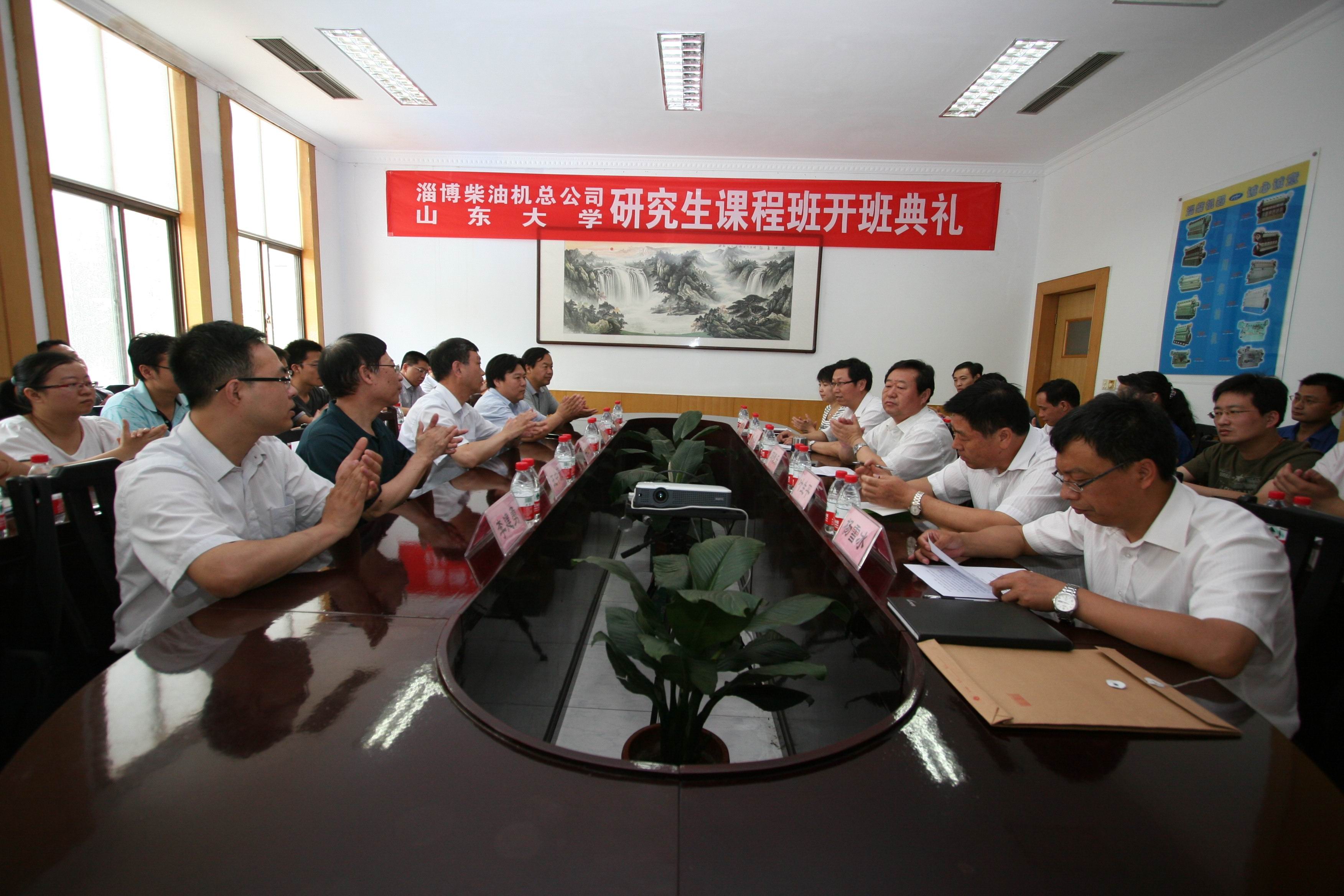 6月9日上午,由beat365在线唯一官网和淄博柴油机总公司联合办的研究生课程班开班典礼在淄博市淄博柴油机总公司办公楼会议室举行。beat365在线唯一官网院长、博士生导师李剑峰教授,beat365在线唯一官网党委副书记仇道滨和淄博柴油机总公司董事长邓德乐,公司纪委书记工会主席叶生平,总工程师黄猛,总裁办主任张翠,总经理助理人力资源部部长杨雪冰以及30位学员参加了开班典礼。