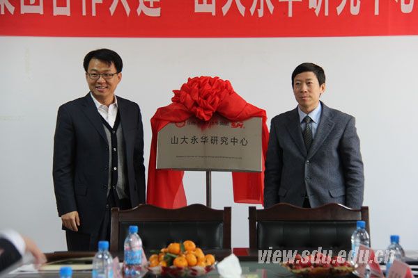 12月5日,beat365在线唯一官网与永华集团合作共建“山大永华研究中心”签约揭牌仪式在淄博市沂源县经济开发区山东永华集团总部办公楼会议室举行。沂源县人民政府副县长翟照伟与beat365在线唯一官网院长黄传真共同为“山大永华研究中心”揭牌,山东永华集团董事长兼总裁李永华与beat365在线唯一官网党委书记仇道滨代表双方签订合作共建协议。