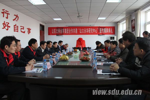 仪式结束后,冯显英等4位教授与山东永华集团技术部有关人员进行了座谈交流,凝练了4个方面的研究课题,作为“山大永华研究中心”的第一期科研项目。
