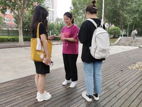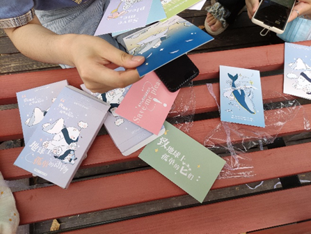 活动伊始,队长王芊惠组织全体队员于兴隆山校区欣园西门集合,队员们彼此初步认识后,各位同学从所有明信片中挑取10张准备发放。此时正值考试周,队员们抓住许多同学前往图书馆自习的机会,在紫荆花路上发放明信片。他们首先向路过的同学讲明来意,并简短地介绍了当前保护野生动物的紧迫性和重要性,然后让同学挑选自己喜欢的明信片,并邀请同学们加入微信群,以便团队后续在群内分享更多保护野生动物的知识。不一会队员们就发完了全部90张明信片,同时还有更多同学愿意加入微信群学习更多的保护野生动物的知识,为保护野生动物贡献自己的一份力量。