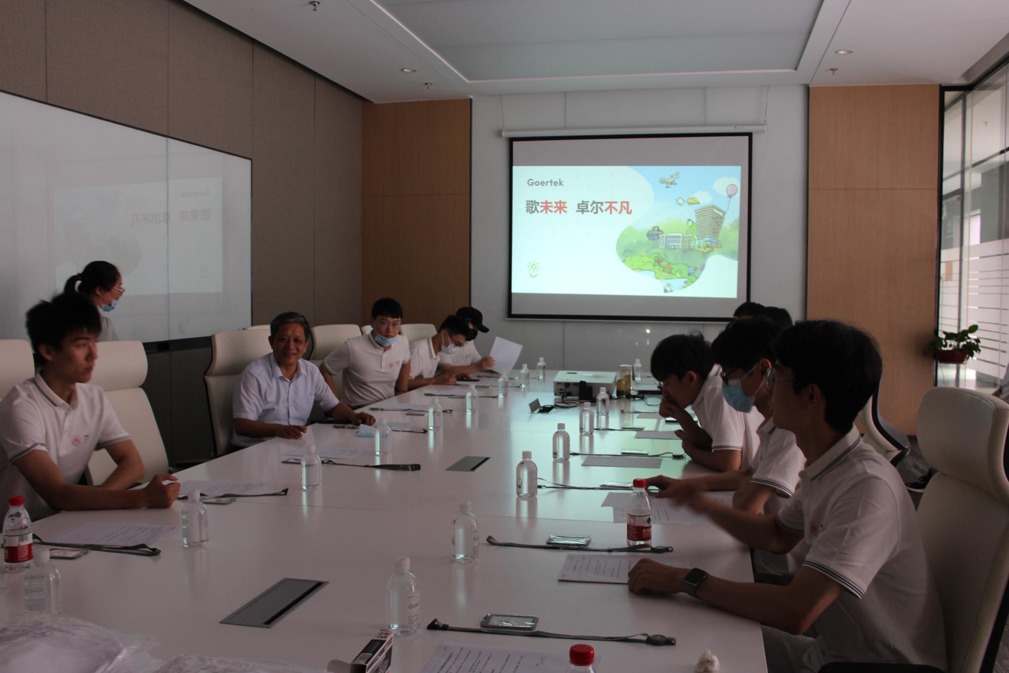 下午,全体训练营营员入住后,歌尔公司给每位营员分发歌尔文化衫,组织签署保密协议等相关文件,学习企业的相关知识。经过两个小时的学习与探讨,同学们深刻了解了歌尔的产业布局与发展等企业文化。随后,在公司组织下训练营营员驱车前往歌尔安丘厂区。未来两天,训练营将会在安丘厂区展开实