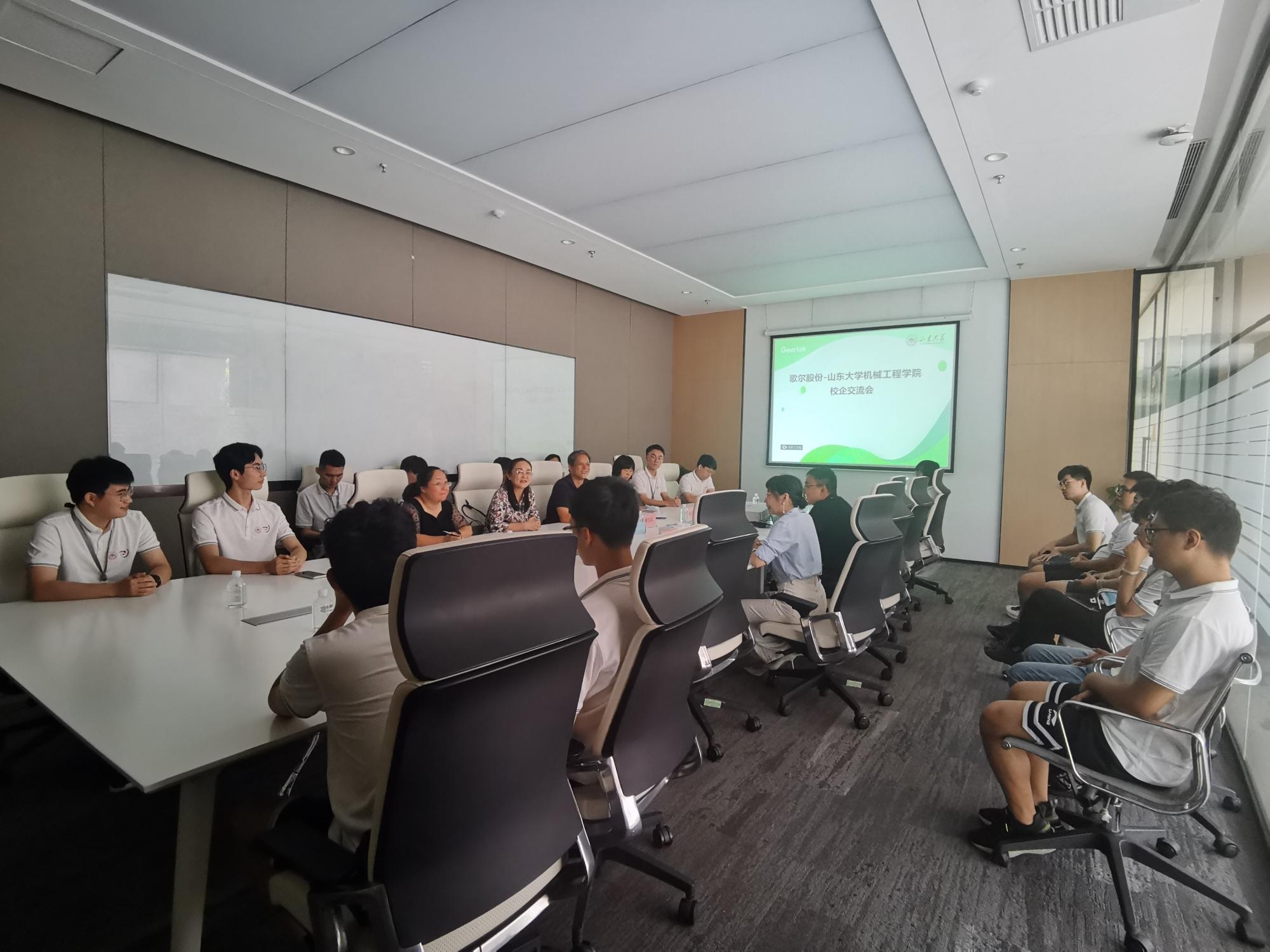 上午十点半,歌尔人事部主任蓝静、歌尔人事部经理王晓东及李雪与机械学院来访领导老师进行了歌尔股份-beat365在线唯一官网校企交流会。交流会上,刘书记和滕书记均表达了对歌尔股份有限公司联合beat365在线唯一官网开展本次实习实践训练营的感谢,并对训练营的日程安排丰富程度和歌尔股份有限公司为营员们提供的生活保障表达了高度的肯定。同时,蓝主任也对beat365在线唯一官网表达了感谢,并对营员们的表现表达了高度的肯定。接着,部分营员们也总结交流了训练营期间的心得感悟,让老师们切实感受到本次训练营活动的丰富程度和对营员们的成长帮助。最后,刘书记及蓝主任作为代表共同展望了歌尔股份有限公司和beat365在线唯一官网未来更多的合作交流,期待培养出更多优秀的能为社会和国家做出更多贡献的学生。