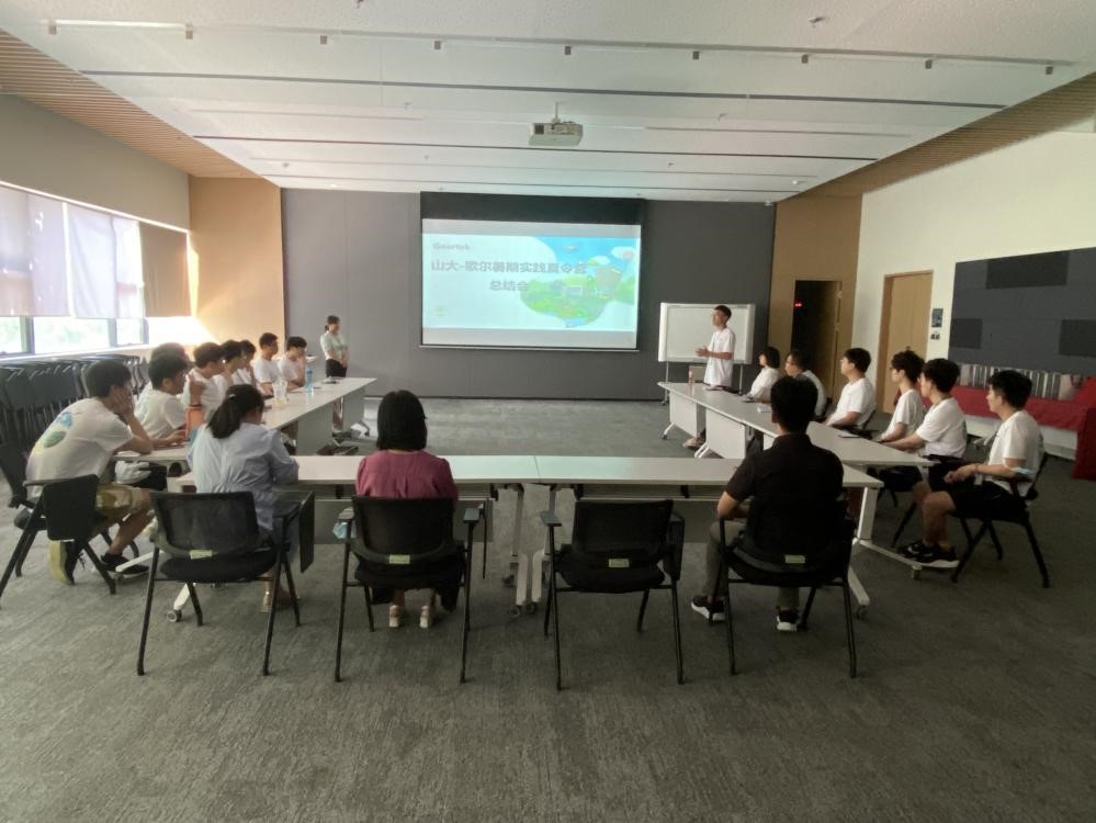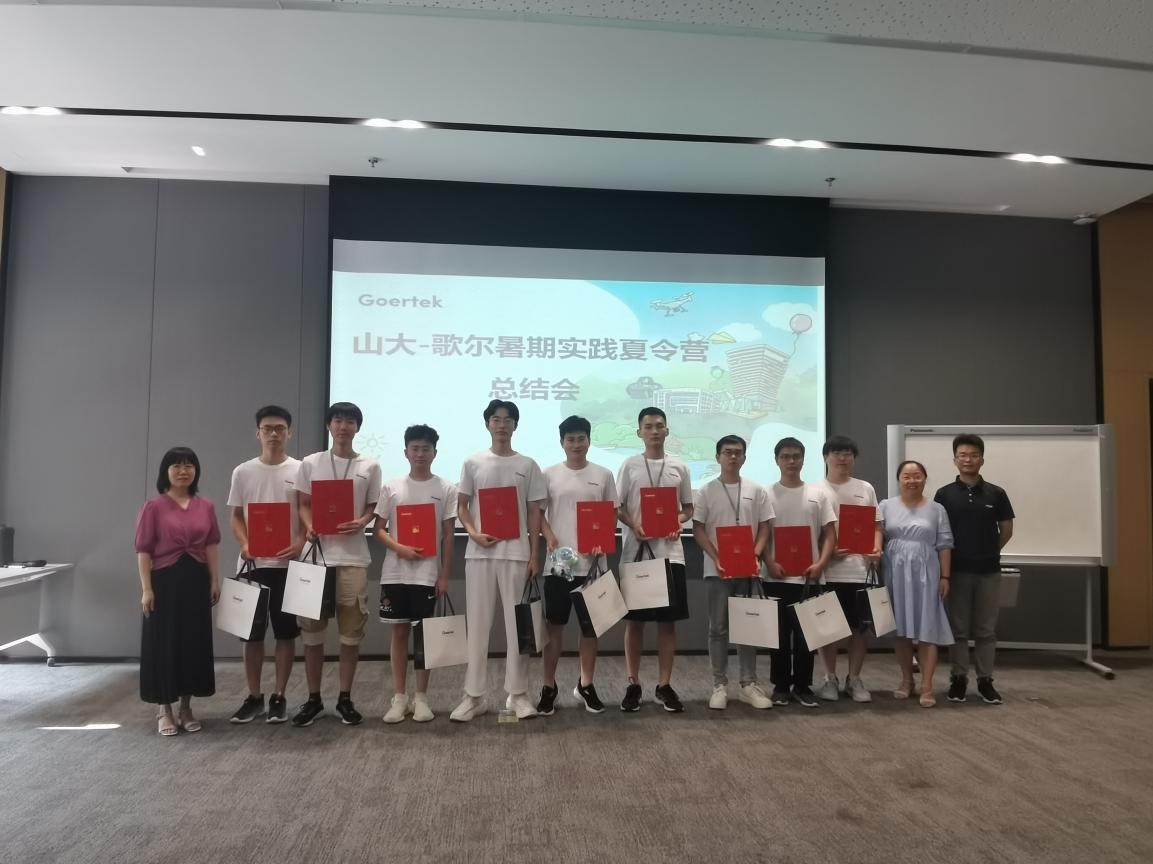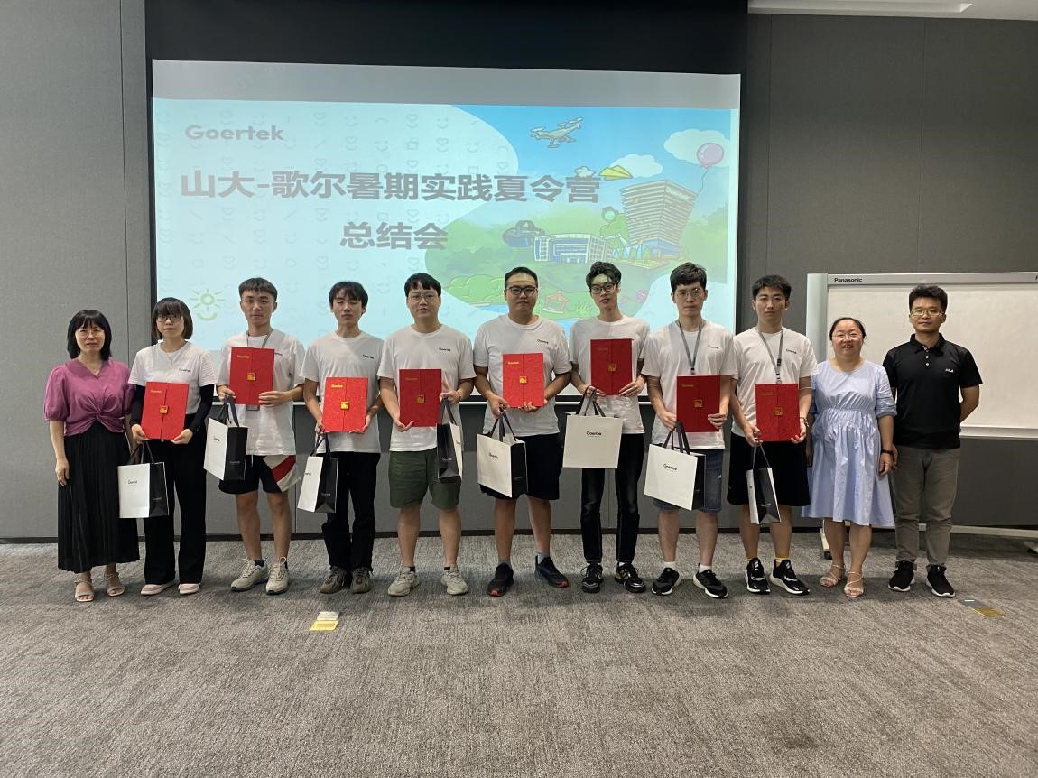 总结大会最后,歌尔股份有限公司为每位同学准备了结业证书和伴手礼。最后由李雪经理总结了此次夏令营带给山大机械学院夏令营营员的成长和收获,并希望山大与歌尔携手共进,一路欢歌,一起前行。