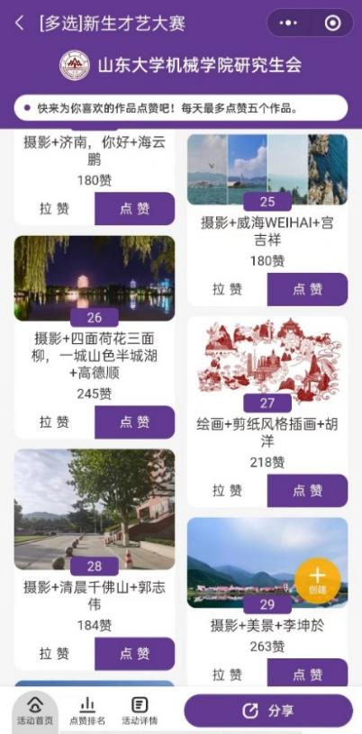 青春需要活力,青春需要热情。本次新生才艺大赛为我院研究生提供了施展才华的舞台,提升了大家的艺术素养,为迅速适应研究生学习生活奠定了基础。同时也向社会公众提供了走进山大、了解机械的平台,展示了机械学子朝气蓬勃的精神面貌和积极向上的青春风采。