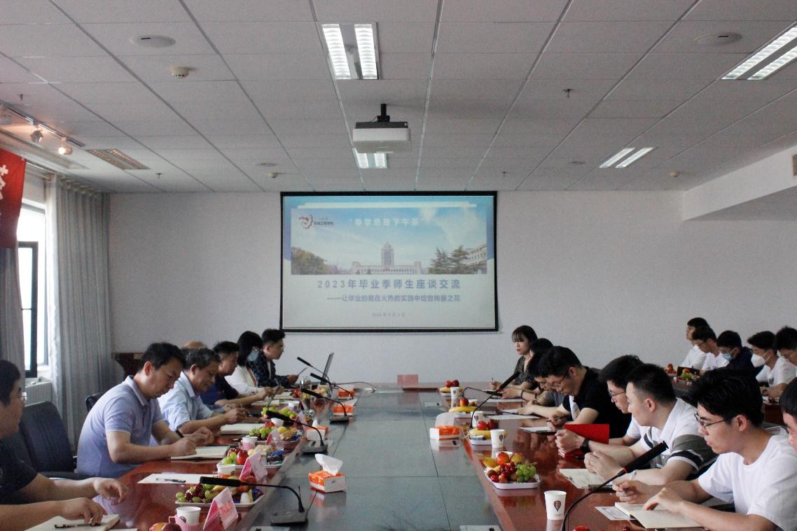 在师生座谈交流中,毕业生们先后汇报了学习期间的科研成长与思想进步情况,感悟了在校学习、生活、工作的心得与收获,畅谈了自己的职业生涯规划和对学院建设的意见建议及美好祝愿,纷纷表达了对学科专业的热爱以及深厚的家国情怀、校院情结和师生情谊。领导老师们共享了同学们的心得体会,对所提意见表达感谢的同时征询了同学们的建议,并期望即将走向工作岗位的“准校友们,要致力把学术规划、职业发展与时代结合、与家国相融,在火热的实践中去大胆绽放远大目标和宏伟抱负的绚丽之花。
