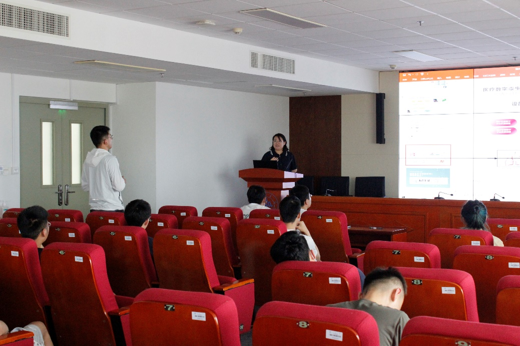 马嵩华副研究员首先介绍了研究背景,随着科技的进步,智能制造是当今制造业发展的方向,而数字孪生和其他新技术如机器学习、物联网传输一样,为当今智能制造的发展提供了巨大的可能性。紧接着,马嵩华副研究员向大家介绍了当今数字孪生如何在制造业中发挥其作用,并介绍了相关案例。在医疗设备研发中需要先设置人体数字孪生模型,在设置设备测试试验平台,最后准备医疗设备样机和医疗设备虚拟样机,两者相互对照,通过模拟设备的运行情况,可以提前发现设备潜在的隐患,从而提高设备的可靠性和运行效率。讲座结束后,同学们踊跃发言,针对自己的感兴趣内容与疑惑,和老师进行了交流,马嵩华副研究员对同学们的问题进行了详细解答。