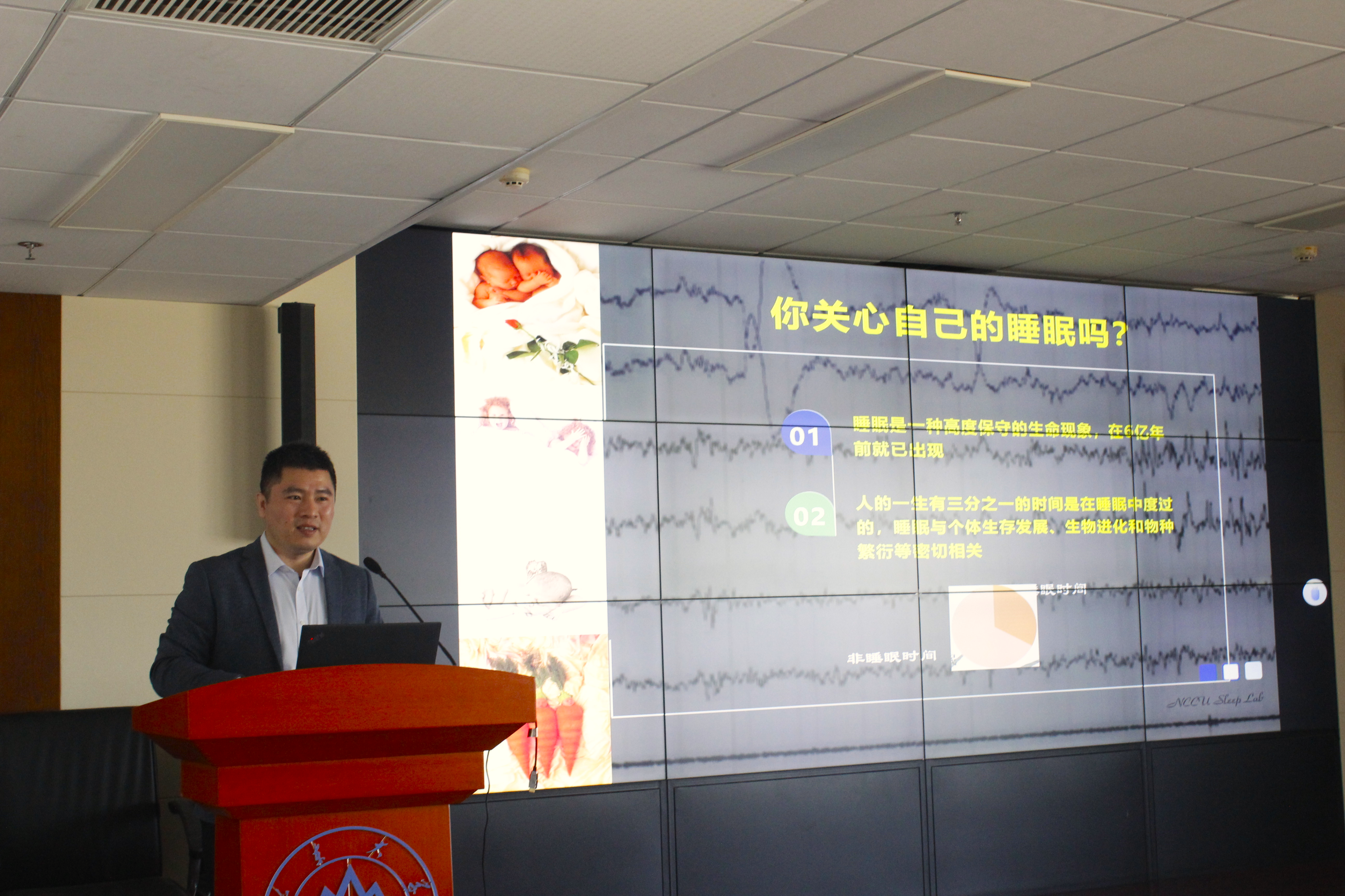 讲座最后,滕玉军进行总结讲话,他指出同学们要培养睡眠健康的意识,对自身睡眠情况进行更深入的了解。强调每个人都应该保障充足的睡眠,尤其是科研工作者,更应当注重身体健康,不能忽略了睡眠的重要性,只有保障了充足的睡眠,才能确保有充沛的精力投入到科研工作当中。