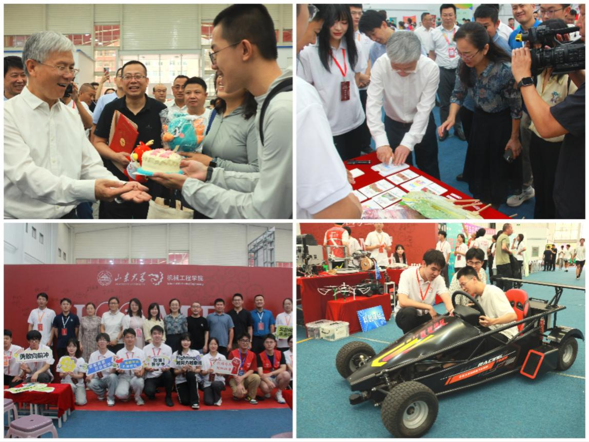 精耕细作显匠心,特色布展启新程。学院精细预案、科学统筹、创新文创、完善流程,开展了迎新工作部署会、协调会、志愿者培训会等。通过布置学工展板、科创展台、文创体验区、合影墙等,展现了机械学科特色和学院深厚底蕴,提升了学生的荣院爱院精神。迎新现场,校长李术才亲切看望新生及家长,为学院新生高炳楠送上山大文创礼物和奶油生日蛋糕,一起同唱生日歌,同启新征程。学院党委书记刘杰、院长万熠来到现场看望新生,指导迎新工作。