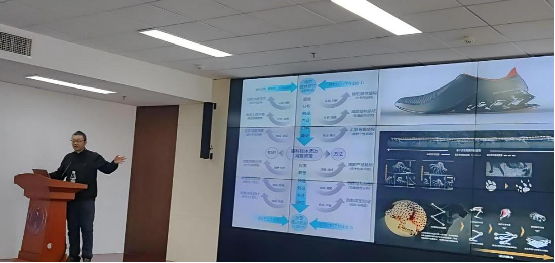 邱松教授首先介绍了设计形态学的前沿理论及其实际应用。他详细阐述了设计形态学的研究路径、理论构建和实践应用,强调了该领域在探索未知形态、推动设计创新方面的重要作用;回顾了设计形态学的发展历程,从歌德的植物变形记到现代设计形态学的形成,展示了其在不同学科中的广泛应用;解析了设计形态学的研究框架,指出其融合了科学性与人文性,并涵盖了原生形态、意向形态和交互形态三个主要内容。同时,邱松教授分享了猎豹跑鞋、水生植物建筑等实际案例,展示了如何从自然形态中汲取灵感,并将这些灵感转化为创新设计,这些案例不仅体现了设计形态学的实践价值,也展示了设计创新的无限可能。