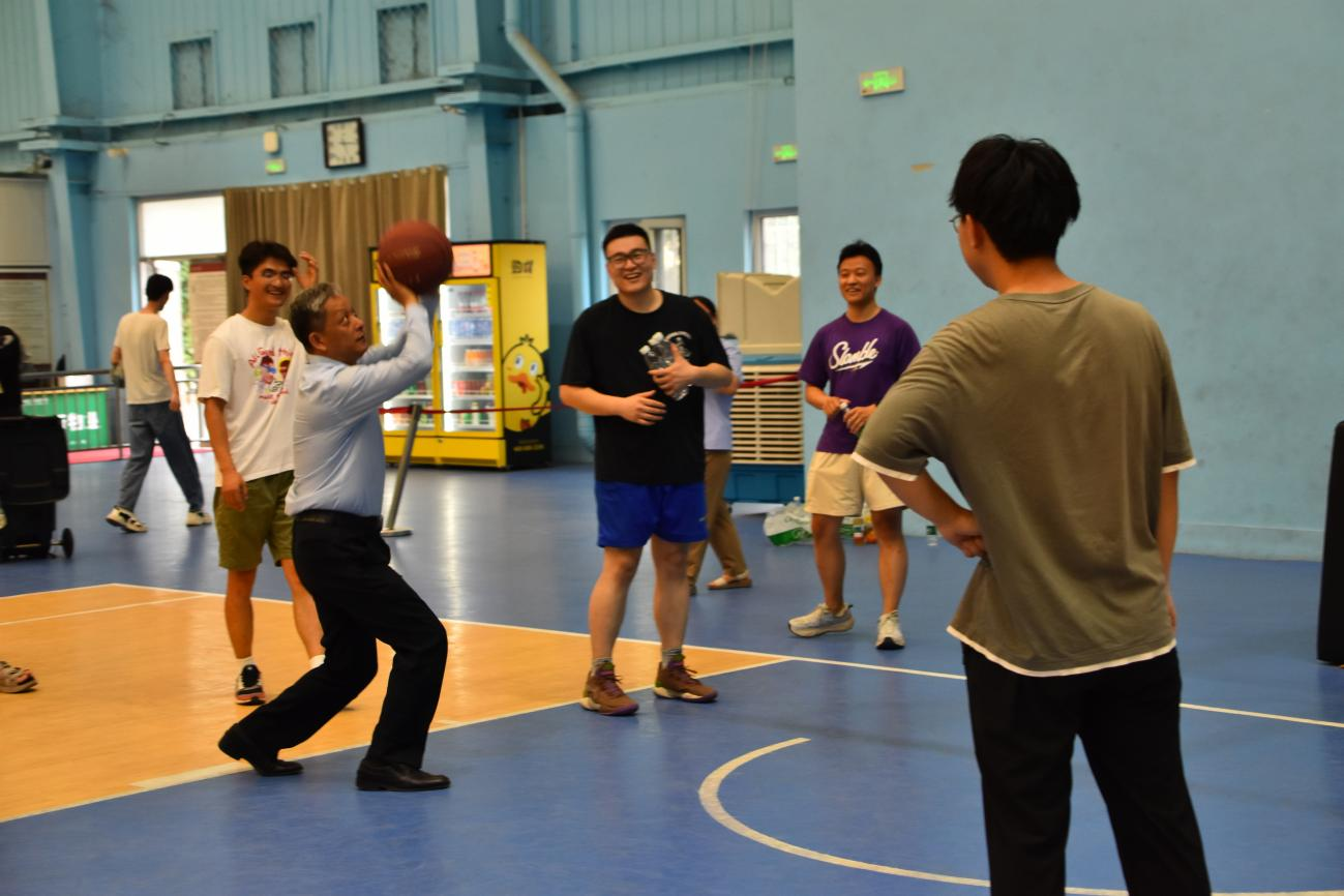 6月13日下午,beat365在线唯一官网在千佛山校区体育馆举办了研究生毕业生趣味篮球赛,2022级硕士研究生的六个班级都参与其中。beat365在线唯一官网党委副书记滕玉军与研究生辅导员宋小霞到场为毕业生们加油助威。