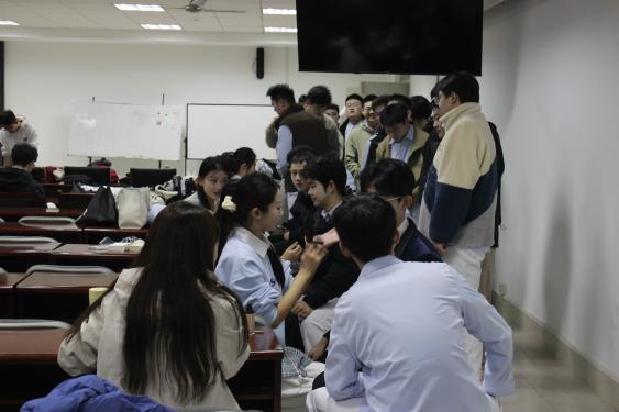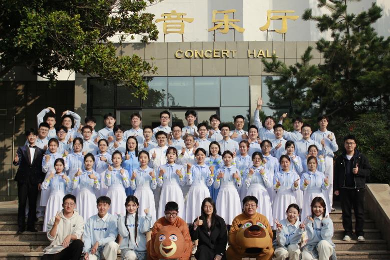 匠心妆造,蓝白碰撞显风采。为了在比赛中呈现最完美的效果,合唱团投入了巨大的热情与努力。日常排练中,师生们从最基础的发音、气息控制做起,反复打磨乐曲,校准每一个音准。他们利用课余和休息时间,一次次合练,不断调整声部间的平衡与和谐。赛前师生们在妆造与服装准备上下足功夫,本次比赛选用的服装极具巧思——清新的蓝色上衣与纯净的白色下装形成鲜明而悦目的视觉碰撞,既象征着蓝天白云的自由辽阔,又暗合了机械工程学科理性与梦想交织的特质。统一的着装,精心的妆容,让整个团队在登场瞬间便显得精神抖擞,气宇轩昂,为精彩的演出奠定了坚实的基础。