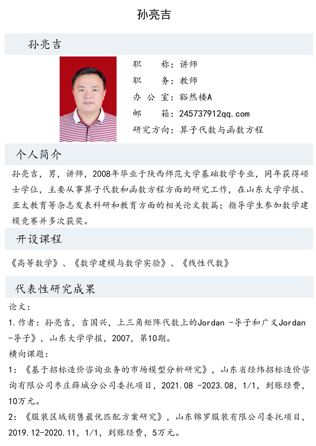 孙亮吉老师个人简介