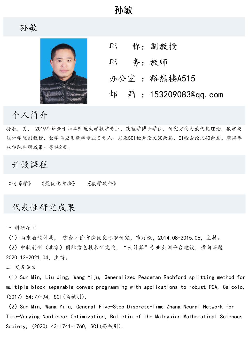 孙敏老师个人简介